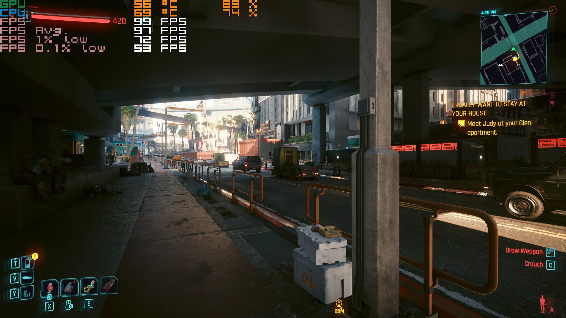 The difference would probably be even larger with a more powerful CPU and GPU, as the ones I have are hovering around 75% and 87% usage respectively in the stand still test.